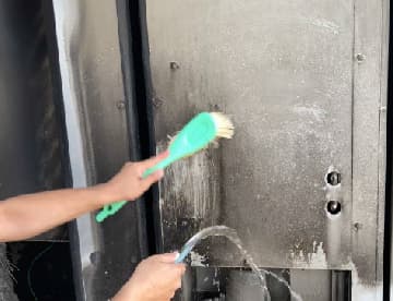 1~2分放置後、ブラシで入念に汚れている部分を擦ってください。