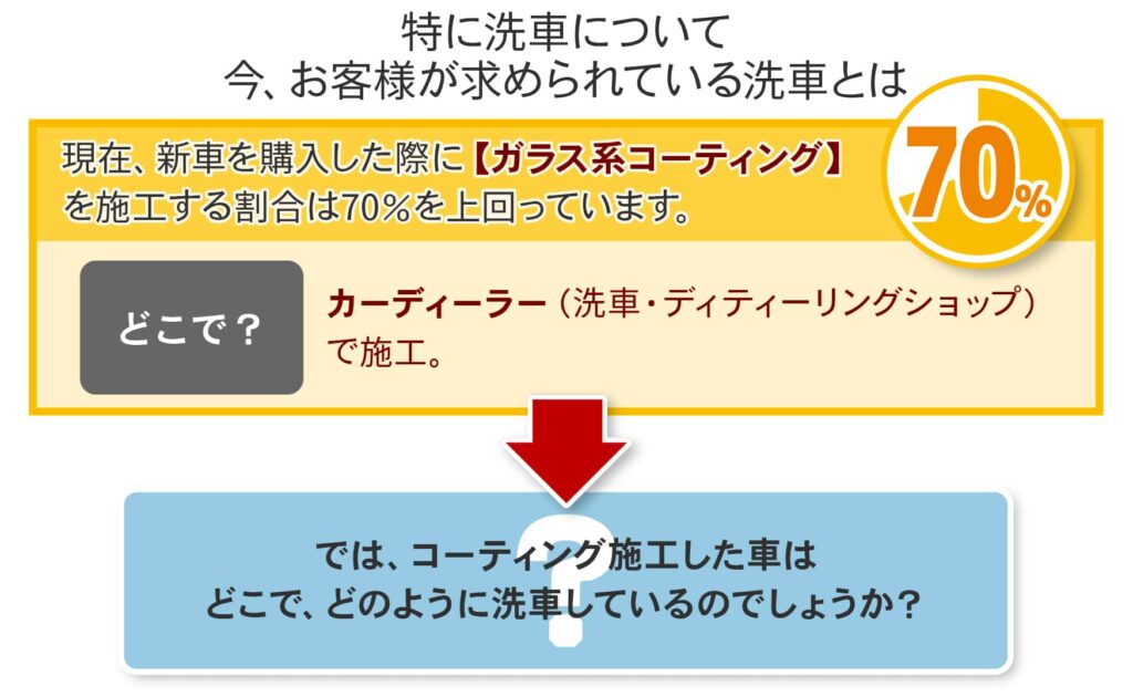 洗車を受注する際は、コーティングの有無を確認し、お客様の車に適した洗車をおすすめしてください。