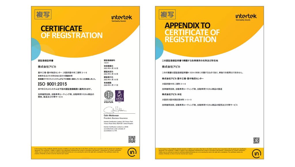 株式会社アピカは、2023年4月18日に国際標準化機構が制定する「ISO9001:2015」の認証を取得しました。